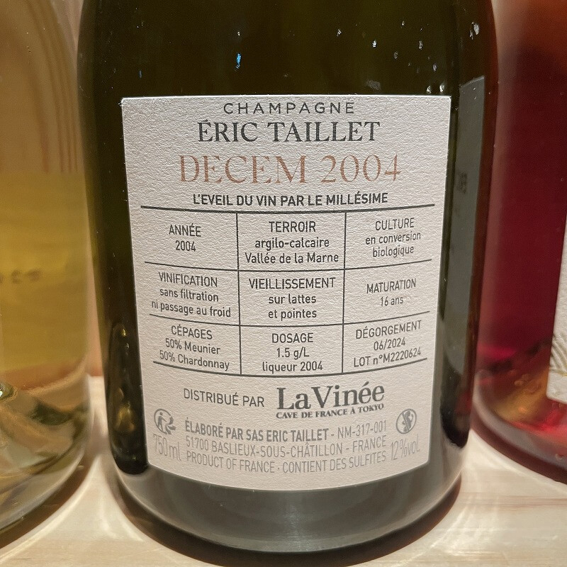 タイプ シャンパーニュ ヴィンテージ 2004 品種 生産者 エリック・タイエ ERIC TAILLET 生産地 フランス > シャンパーニュ -